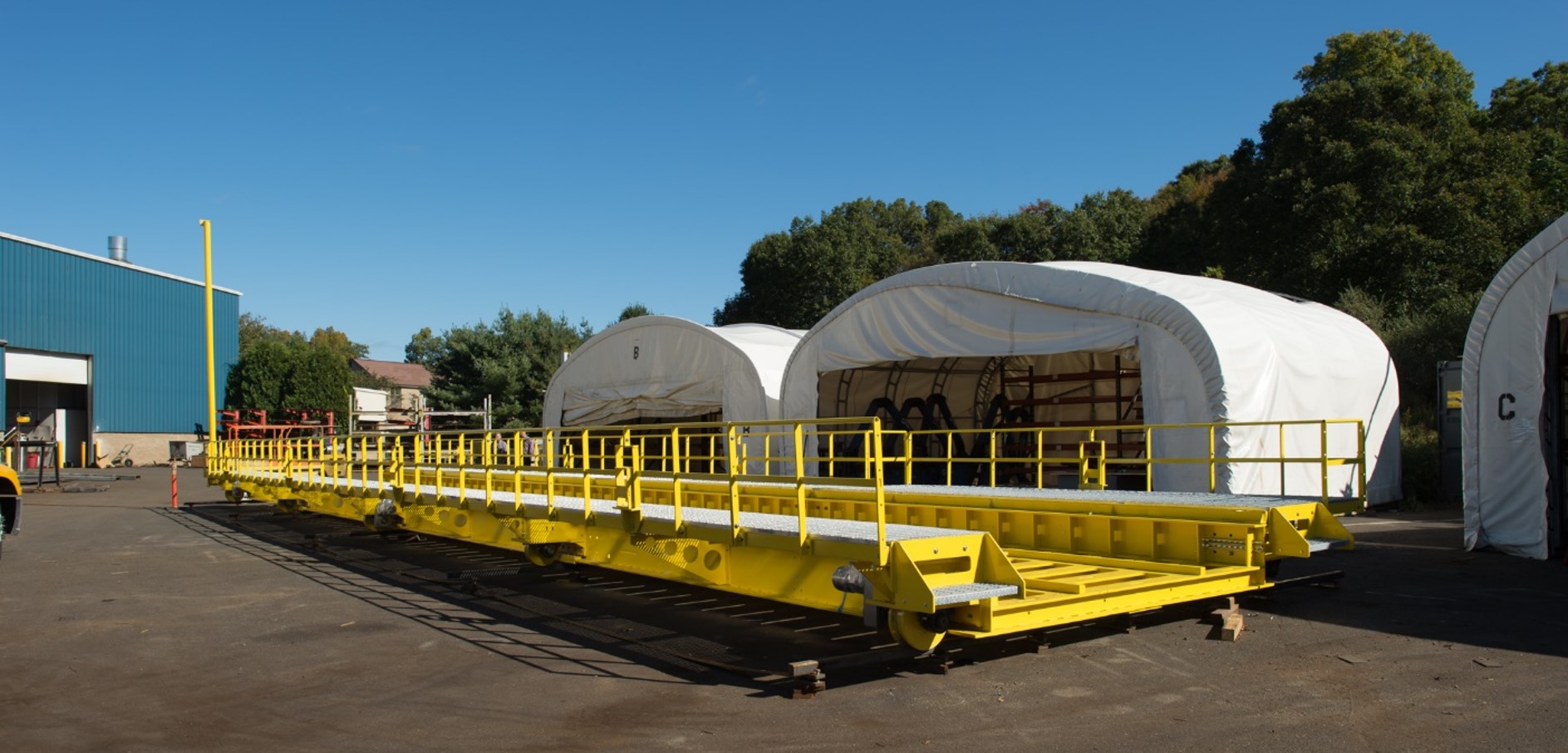 BBM Railway Solutions designs and manufactures custom turntables and transfer tables to meet each customer's specific needs. These systems are engineered for smooth control functioning, and seamless starting and stopping. Tables can also include additional features such as automatic wheel chocks, locking devices, and an enclosed operator controls area.